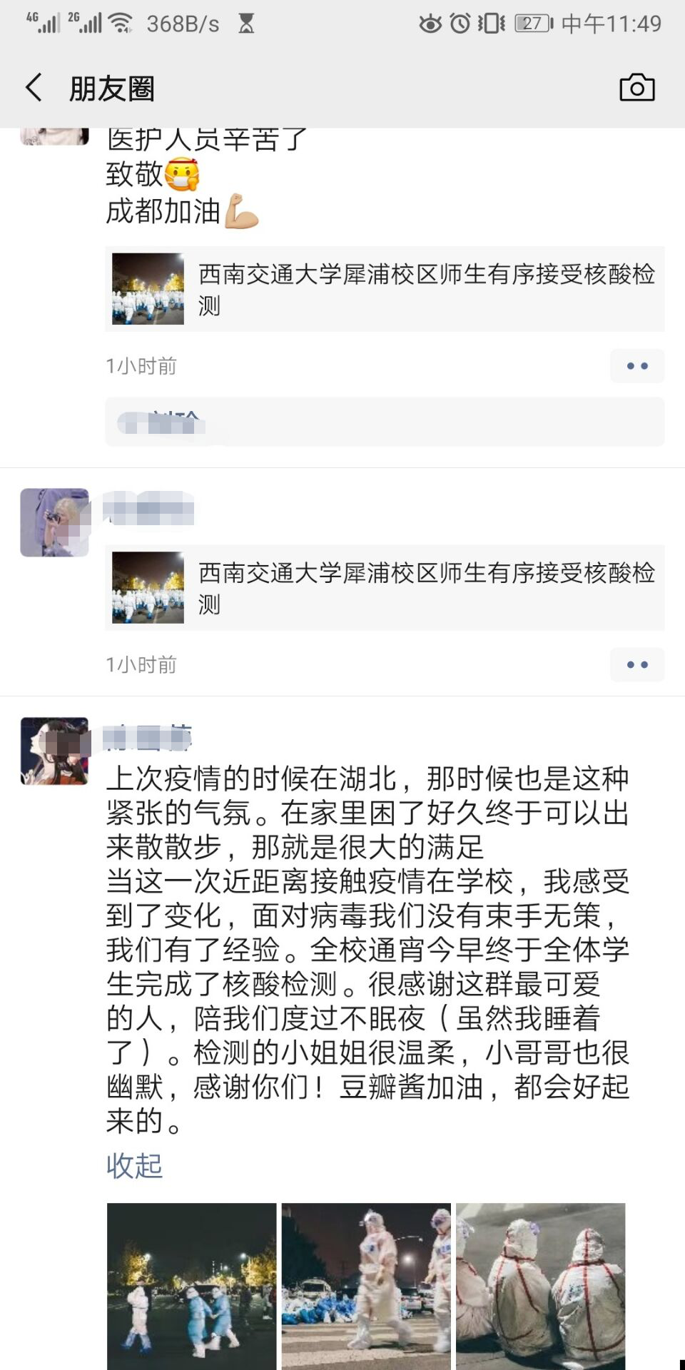 从12月10日晚至11日晨,beat365犀浦校区师生3.2万人有序完成核酸检测,真正体现了交大速度,由衷感谢每一位帮助交大进行本次核酸检测的防疫战士,你们的努力与付出使交大的暮色与晨曦不同往日,令人动容。
