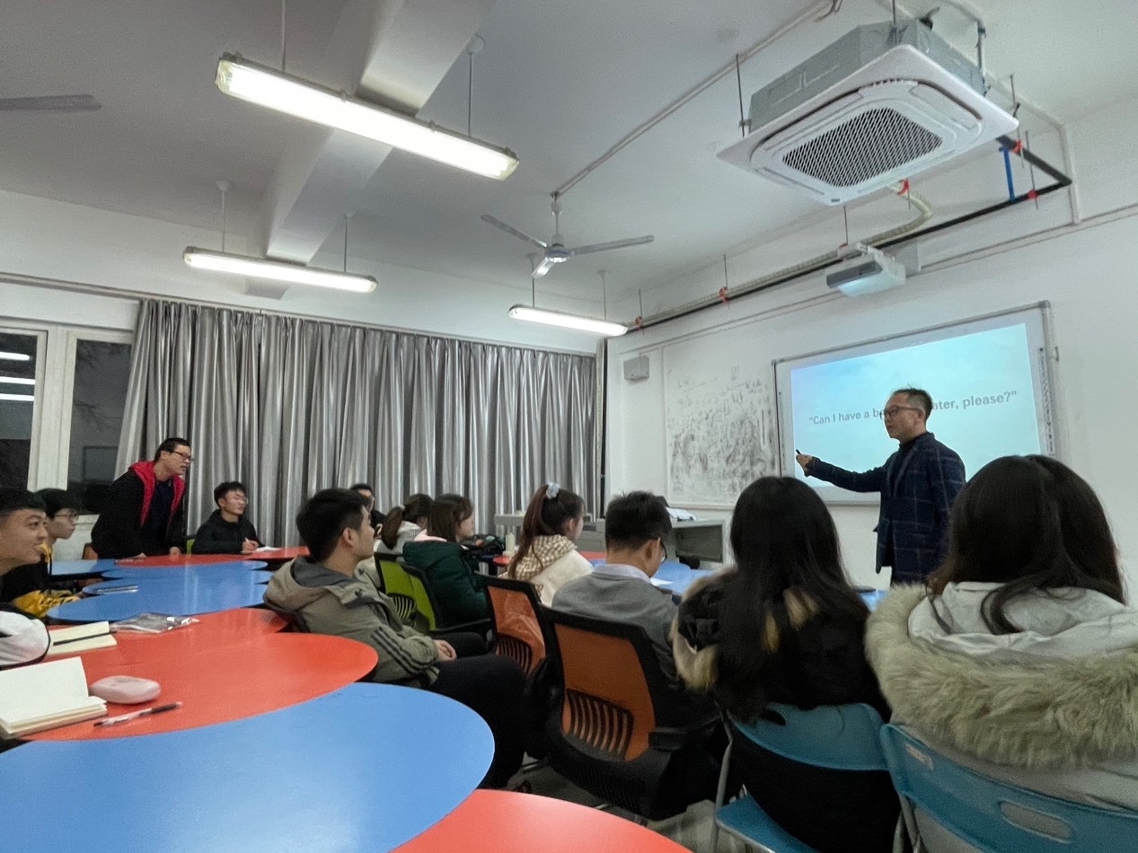 任军老师用他丰富的国外学习生活经历带领同学们拓展视野,引导同学们培养自己的国际竞争力,让学习英语不只是一种考试的任务,更是一种兴趣和修养,更好的适应全球化的新时代,做有国际视野、胸怀天下的新时代老员工。