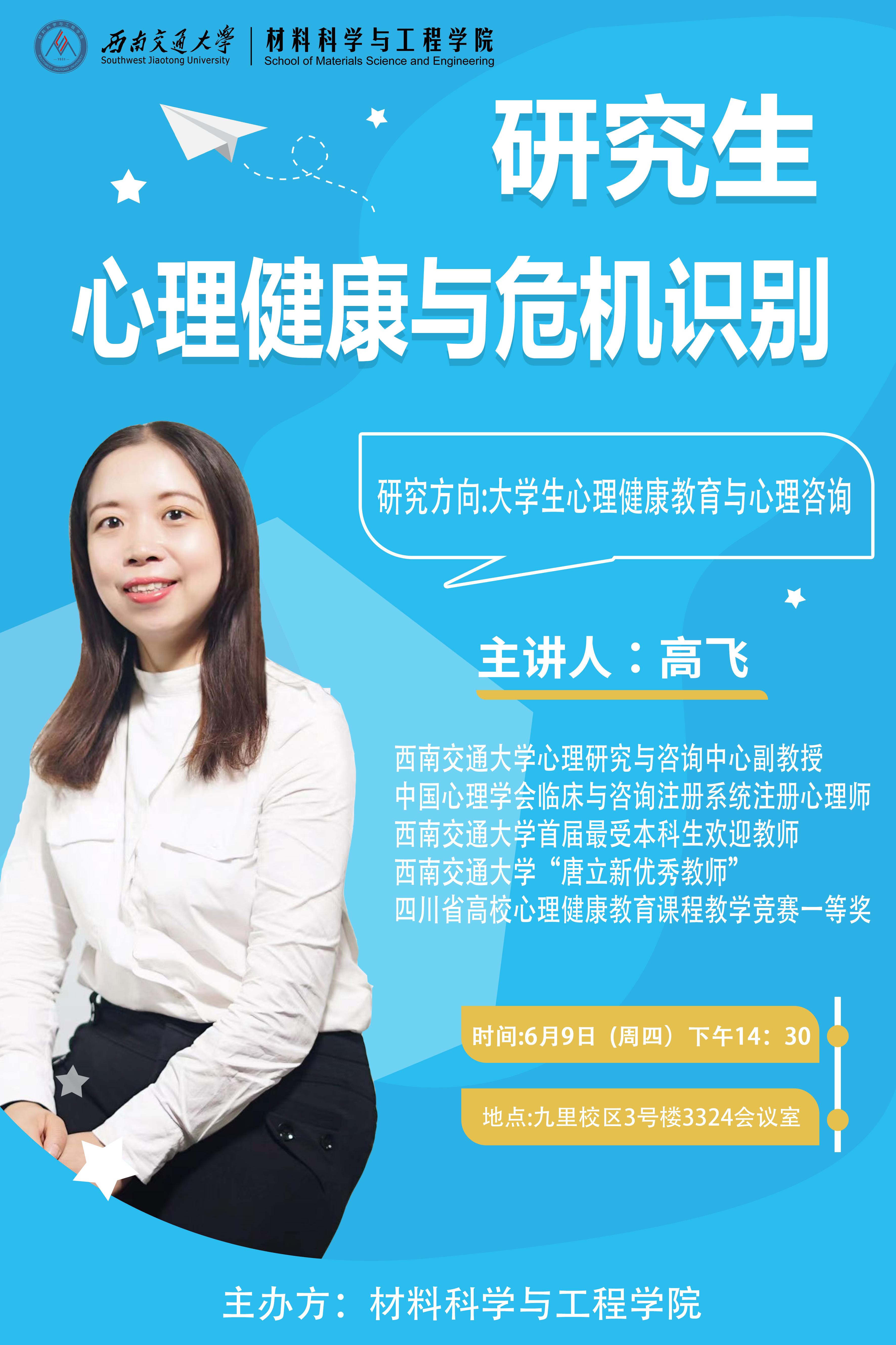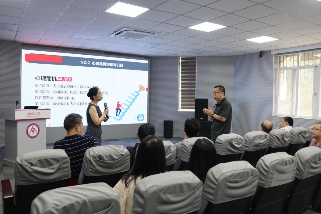 为帮助学院教师加强心理健康教育知识储备,做好研究生心理健康教育工作,全面提高学院人才培养工作水平,2022年6月9日下午,beat365在九里校区J3324会议室举办研究生心理健康教育工作培训,学校心理研究与咨询中心高飞副教授应邀作“研究生心理健康与危机识别”专题培训。本次培训由公司党委书记陈勇主持,beat365全体党政班子成员和在校教职工参加培训。