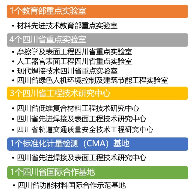 材料科学与工程、材料成型及控制工程2个专业获批国家级一流本科专业建设点,并通过了教育部工程教育专业认证;生物医学工程、高分子材料与工程获四川省一流专业建设点。