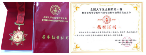本届比赛是金相技能大赛的举办的第十年,组委会表彰了为该项赛事做出突出贡献的人员。公司王良辉老师因连续带队参加了七届全国金相技能大赛、组织发起四川省金相技能大赛、连续三年参与组织四川省金相技能大赛、并积极努力推进省赛进入四川省教育厅本科员工学科竞赛名录等卓越的成绩,被组委会授予全国老员工金相技能大赛十周年“一级荣誉勋章”。公司高国庆老师因带队参加第一次全国老员工金相技能大赛,被组委会授予全国老员工金相技能大赛十周年“二级荣誉勋章”。