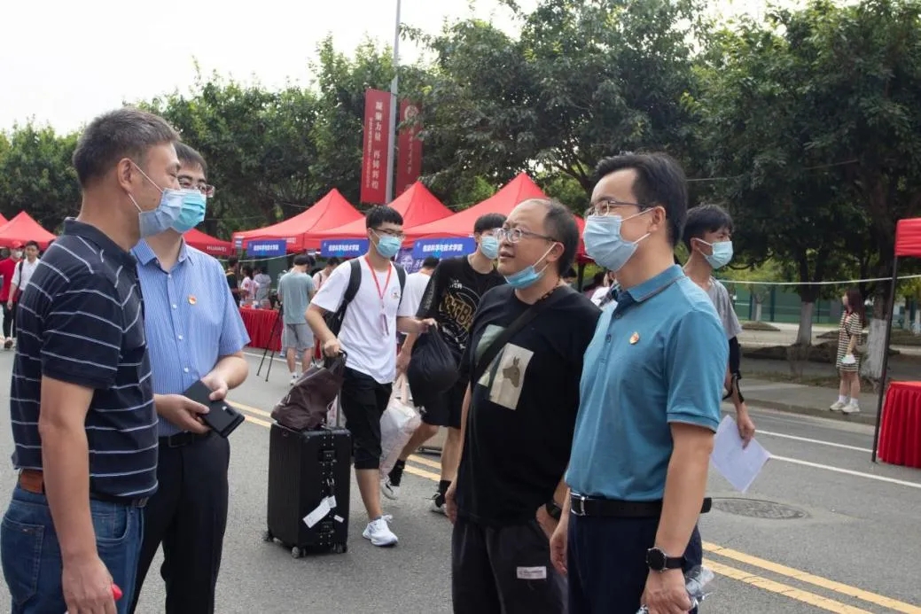 集团、学院的领导老师们多次来到迎新现场慰问看望参与现场迎新服务的师生,对新生报到的情况予以关心,并对全体工作人员的付出给予高度肯定。