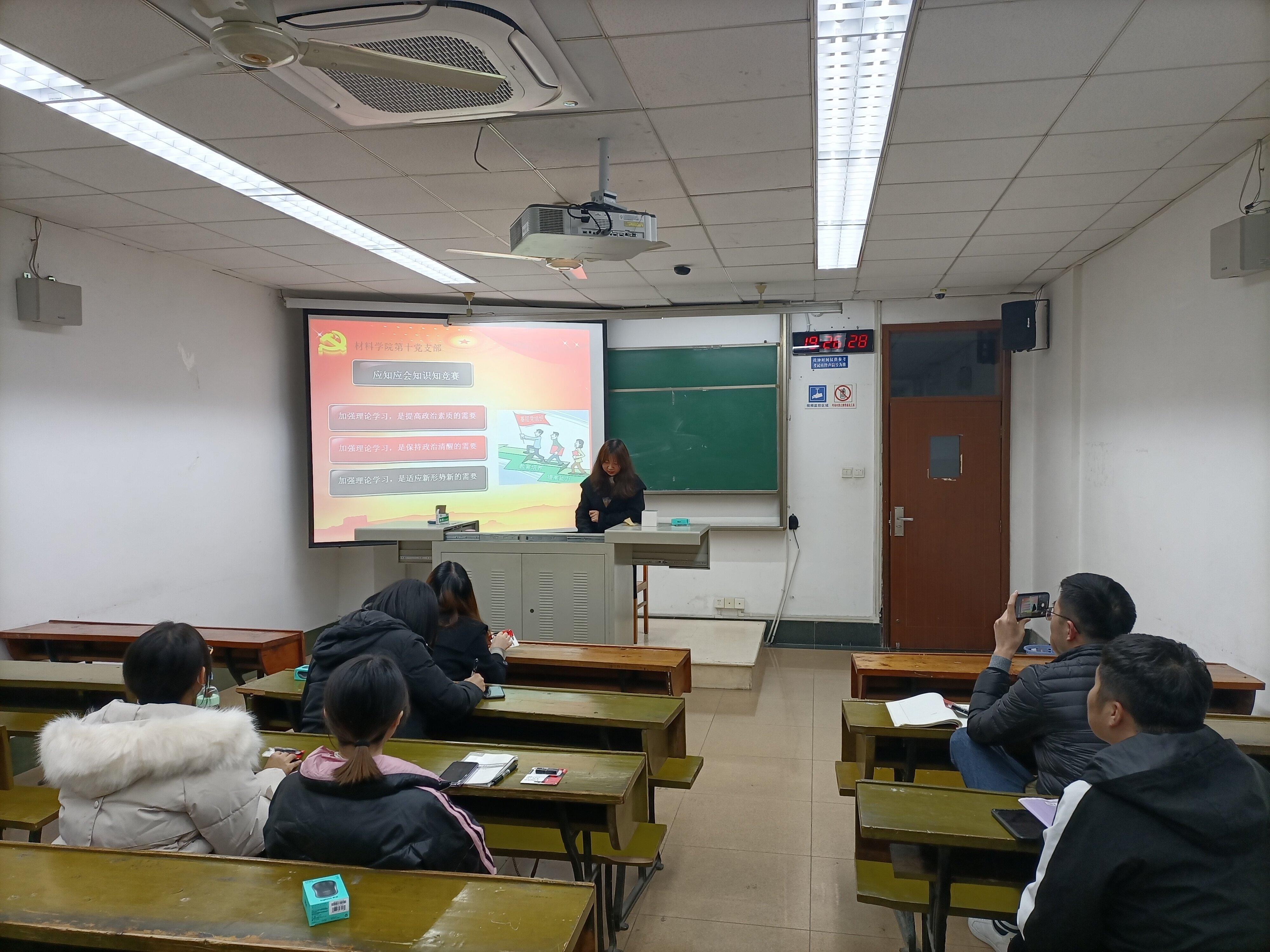 2020年11月23日晚上,公司研究生第十党支部为深入学习贯彻习近平新时代中国特色社会主义思想,深入学习贯彻习近平总书记关于公司党建和思政工作的重要指示批示精神,推动员工党支部深入学好党史、新中国史、改革开放史、社会主义发展史,根据公司党委部署和本支部的实际学习情况,于逸夫楼4404A开展“月月比”活动,对支部同志阶段性学习成果进行考察、评比和总结。